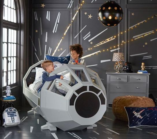 There were some pretty neat toys on display in the unboxing event leading up to today’s “Force Friday” debut of The Force Awakens merchandise, but this one is for serious business only: a $3,999 Millennium Falcon bed that you can buy from Pottery Barn. It’s only a narrow single bed, either because it’s made for a child or they assume you’re about to be single after you spend $4,000 on a Star Wars bed.