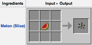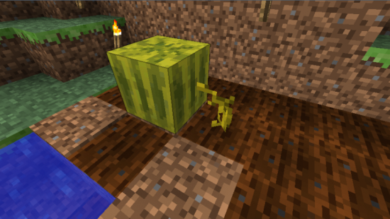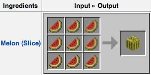 - Melons. A block, rather than an item. When destroyed, pops 3-7 melon slices, which heal one food point when eaten: