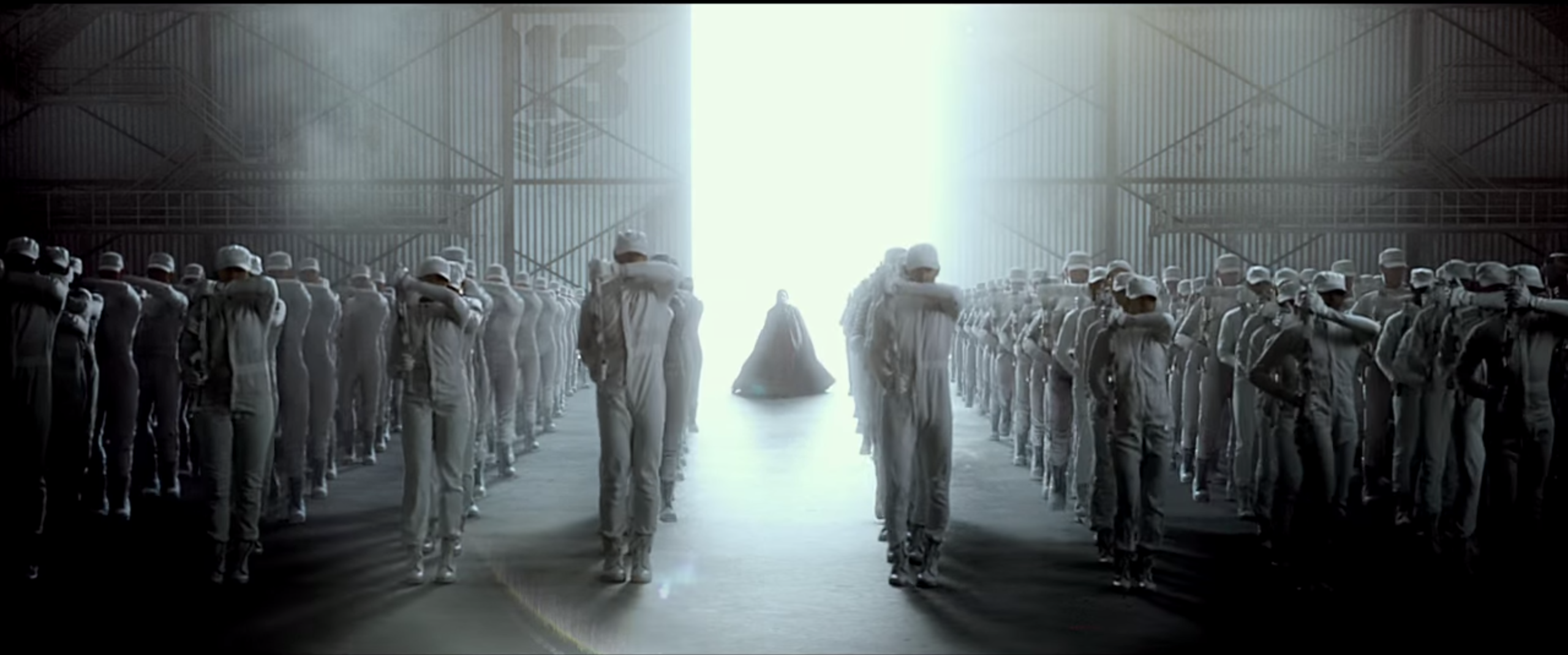 Does the marching stir up any feelings for you guys? Anyone else notice the parallel between this and the Peacekeeper uniforms? Or Darth Vader and his Stormtroopers? Hmm…