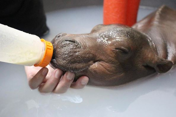 Our latest bundle of cuteness comes the Cincinnati Zoo. A two-day-old hippo born six weeks early took her first dip in the pool and cameras were on hand to capture the fun. “Her care team continues to give her 24-hour attention, which includes tube-feedings, vet checks and keeping her warm and moist,” the video’s caption read. “She is gaining some strength. This morning she got her first pool experience. Most hippos are born in the water, but they can’t actually swim. Pool time will help her build muscles and balance and maintain an optimal body temperature of 96-98 degrees.”