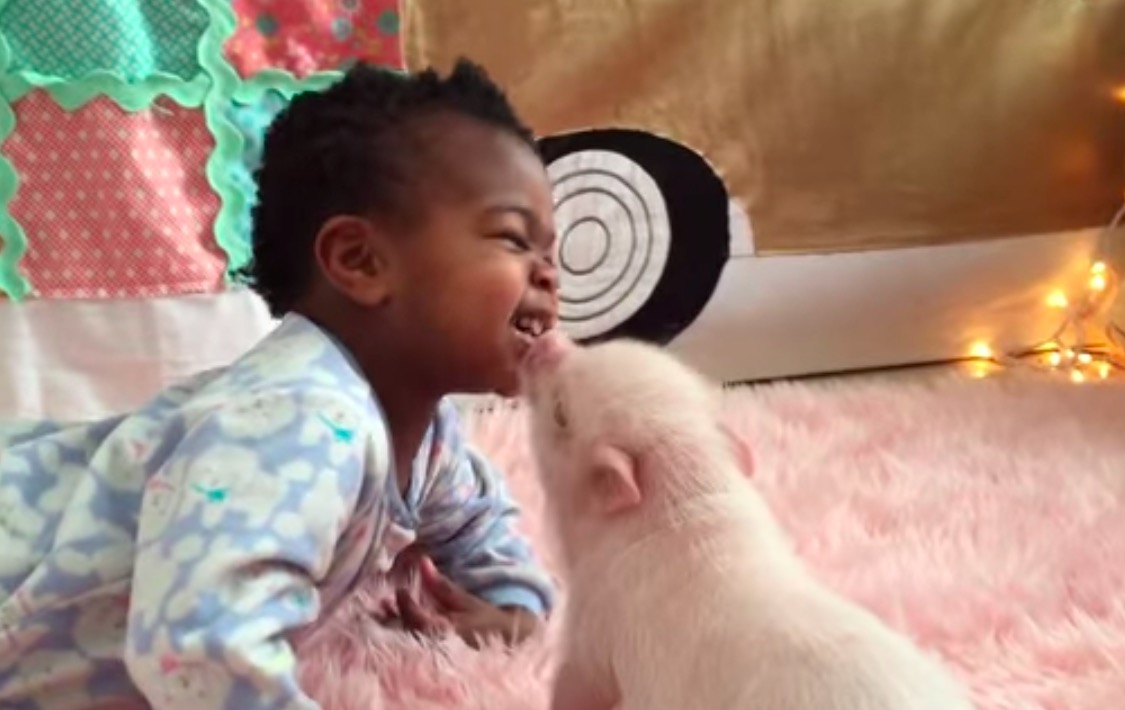 Monday Cute: Here’s a Tiny Human Playing With a Tiny Pig to Make Your Day