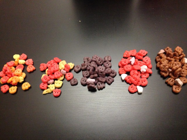 It’s clear from the points that Boo Berry and Franken Berry are the losers here, but the top three spots were much more contentious. It was close, but Frute Brute landed in third thanks largely to Justin’s placing it in the top spot. It’s similarity to Yummy Mummy is noticeable in both taste and appearance. Here are five laid out bare: