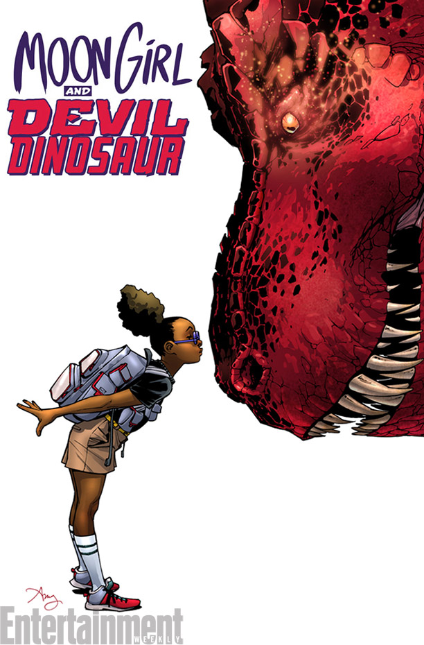 Marvel just revealed a brand new comic featuring a new female superhero and her unlikely teammate: Moon Girl and Devil Dinosaur. Longtime Marvel fans might remember a 1978 comic called Devil Dinosaur featuring the titular character and Moon Boy, his human counterpart. This is essentially a reboot of that except instead of Moon Boy, we’ve got a Moon Girl, who is described as a somewhat awkward genius kid outcast. Of course, no awkward genius kid outcast is ever really complete without their giant red dinosaur because hey, this is comics. So who else is already totally in?