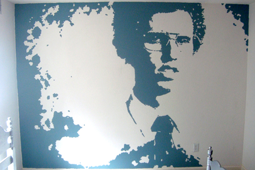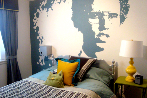 Design Mom editor Gabrielle Blair wanted to decorate her 12-year-old son’s wall to reflect his appreciation of movies, but she didn’t want to spend a lot of money or go with violent or sexual imagery. The result: This fantastic Napoleon Dynamite wall mural. (I’d assume a Liger staring at you night after night would be too creepy.)
