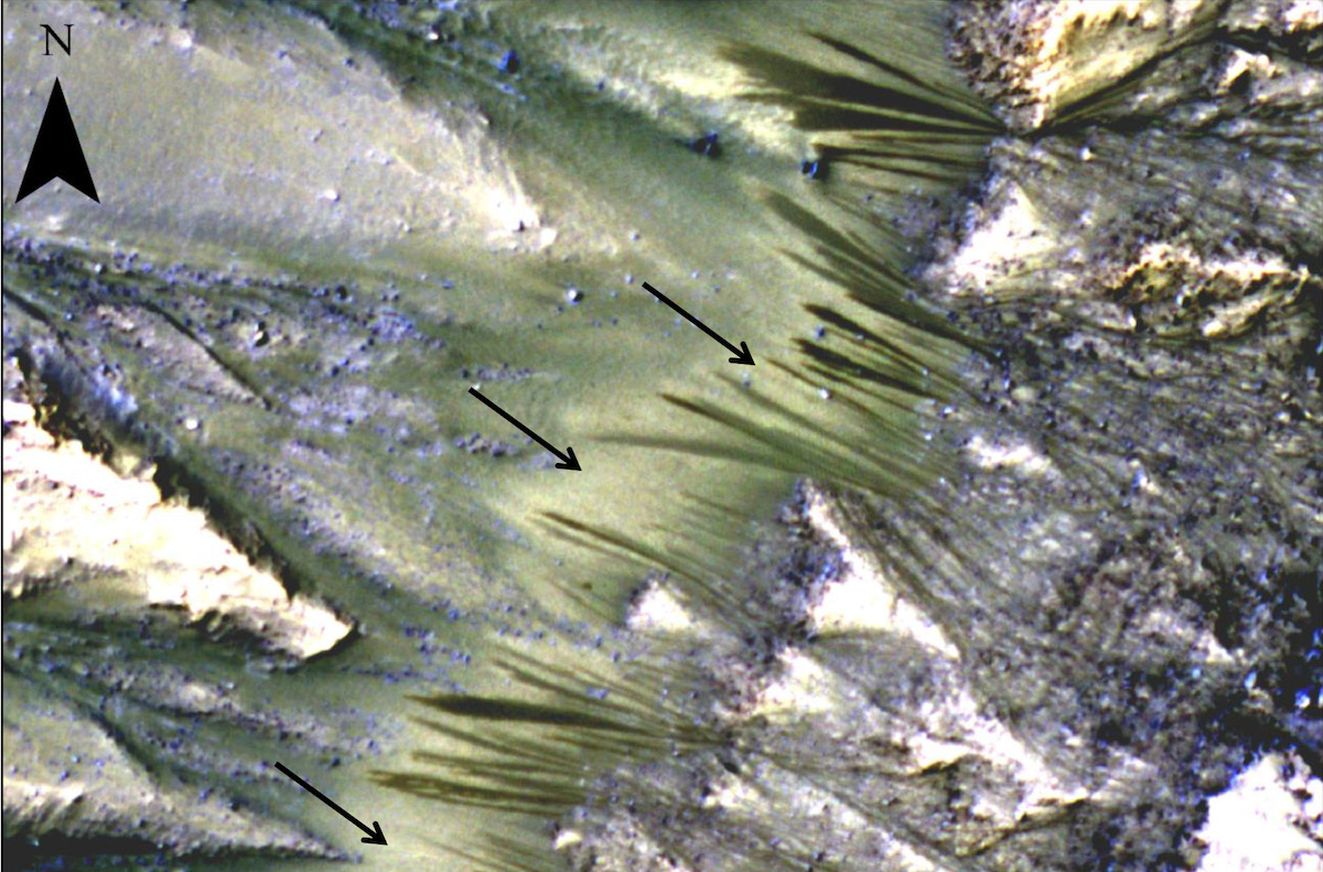 For those who are late to the Mars water party, which sounds like the worst party ever (seriously, it’s cold up there), the RSL are dark streaks that appear on slopes when Mars temperatures reach their warmest, and scientists have been investigating to see if they’re caused by water flowing from beneath Mars’ surface.