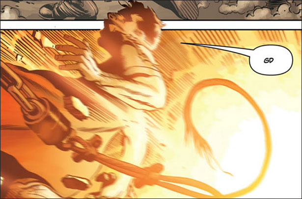 “It should go without saying that the offending panel and caption, a mere ‘GD’, is a sound effect grunt – to suggest Superman’s breath being forced through gritted teeth – much like ‘DHH’, ‘GNUHH’ or the many others used throughout this book and in general in the comics business. It’s not in any way representative of God or a curse.”
