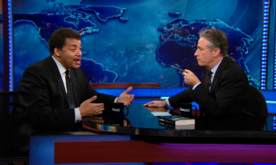 Tyson is a frequent guest on The Daily Show, and that’s just fine with us because he’s one of the most interesting people out there. He was there to promote the paperback of his book Space Chronicles. During the interview, Stewart and Tyson talked primarily about asteroids, and how they will destroy us all unless Tyson gets funding for a gravitational tractor beam.