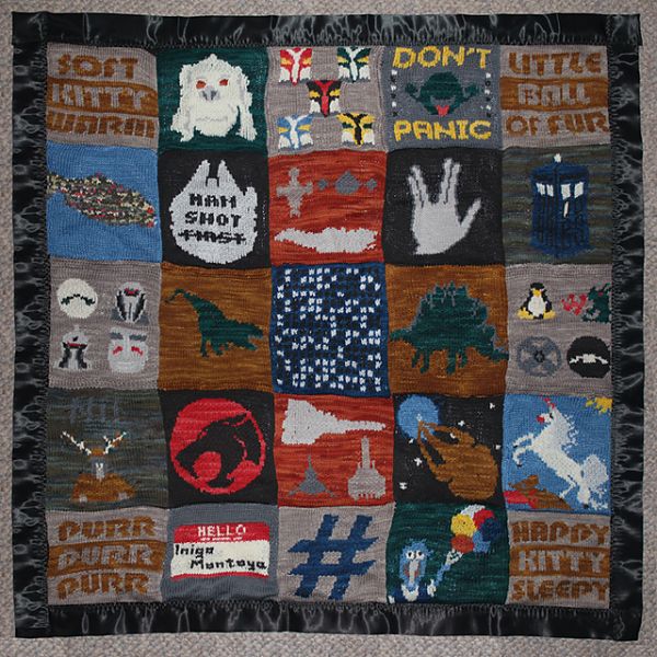 Leilaniac on Ravelry designed this blanket for her nephew to cover everything from the Muppets to the ThunderCats. That center square? It’s his name in binary. You had us at dinosuars, Leilaniac.