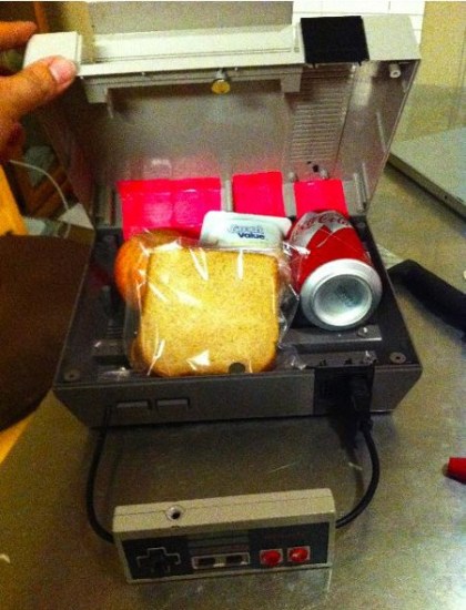 We’ve already brought you the NES briefcase for the businessman on the go who needs to bring a little bit of the good old-fashioned 8-bit goodness around with him, but what if you’re a little tyke and you want to be just like daddy? The NES Lunchbox has you covered. Complete with a sandwich slot and handy controller handle, the NES Lunchbox will handle all of your carrying needs until you grow up and sell your soul (just like daddy did) and have to trade your lunchbox full of GoGurt for a briefcase full of broken dreams and silent, midnight tears.