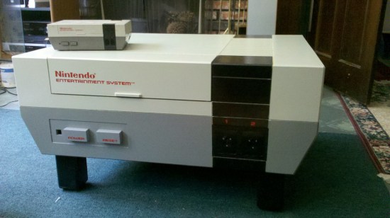 Pay special attention to the scale in this picture. See, that’s no moon. It’s a coffee table shaped like the old school Nintendo Entertainment System.
