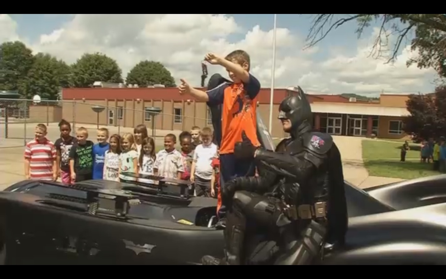 [A] little boy punched him in the face. So he said he was gonna tell Batman! Batman takes Jacob under his arm, leaves kids standing in line. They go back to the bounce house, where Batman confronted the bully, and tells him, gentlemen don’t act that way. That’s not the way to settle your differences. They gave each other a hug and were best of friends the rest of the evening!