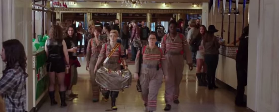 Ghostbusters comes out July 15th and stars Kate McKinnon, Kristen Wiig, Melissa McCarthy, Leslie Jones, and Chris Hemsworth as a “Ken doll with the insides scooped out.”