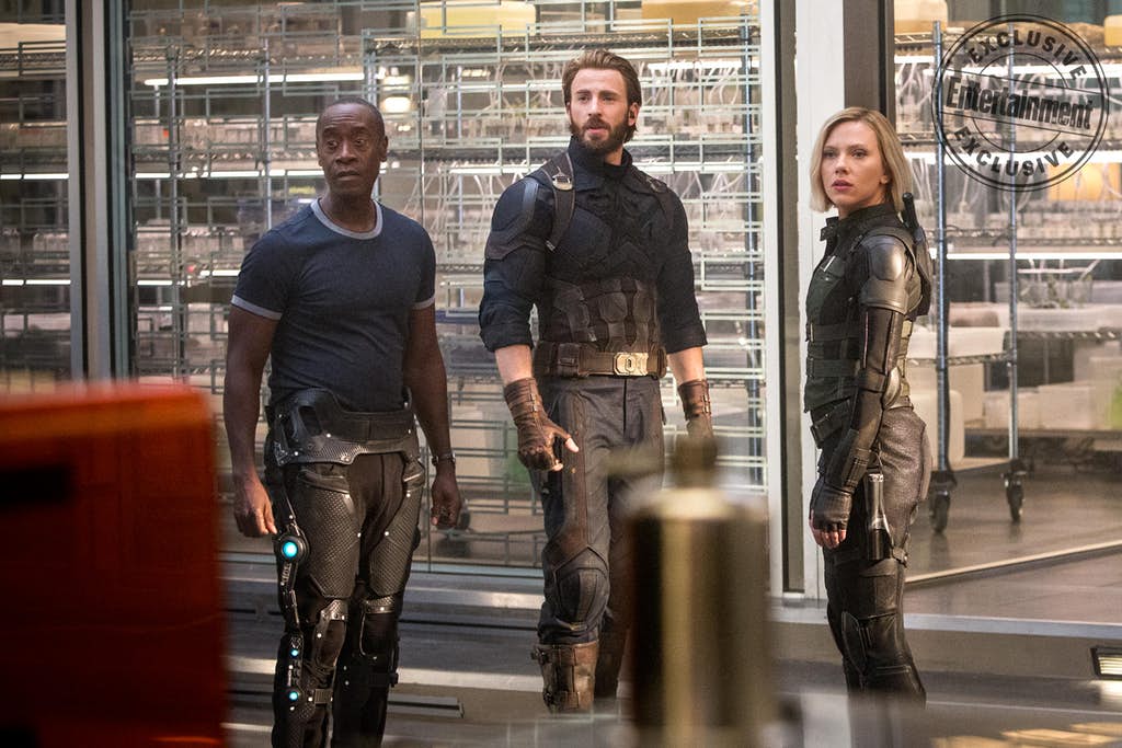 What are we looking at? At least it doesn’t seem to be looks of terror? And Steve and Nat seem like they’re back on better terms with Rhodey, who looks like he’s wearing some Stark-made braces to help with his mobility after the fall in Civil War. Where are these three? A lab? A server room? It reminds me of the cheese-making factory down the street, but that’s probably not helpful.