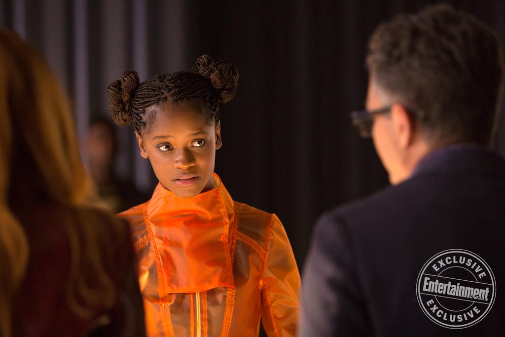 Our girl Shuri is styling in what looks like some futuristic Wakandan-designed threads, likely schooling Dr. Banner (and Wanda?) on a finer point of science. If I were a betting person, I’d say that based on what we know this scene has something to do with Shuri attempting to remove the Mind Stone from Vision’s forehead without destroying him.