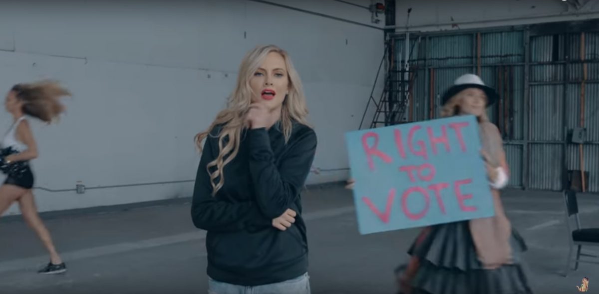 The above is Arbour’s closing message on the song, which I find particularly hilarious (and not in the “effective comedy” way she’s going for), considering that she didn’t write this song. Not entirely. She took an already existing tune and video concept, erased everything that was meaningful about it, and inserted herself doing really bad rapping and hip-hop dancing while serving the blandest feminism ever.