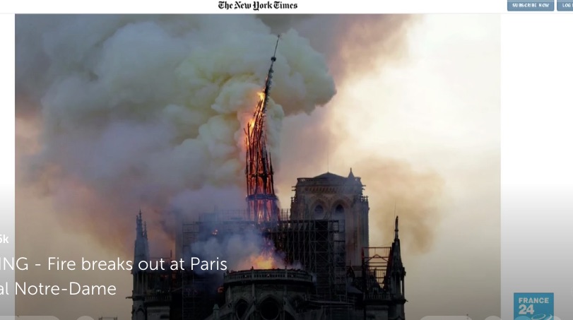 A major fire has broken out at the historic French Notre Dame Cathedral immortalized in literature and film. The damage is devastating and ongoing.