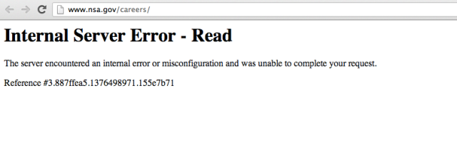 To be fair, they seem to really need some new tech support, as the official page about NSA careers (as in the one not on Twitter) is down.