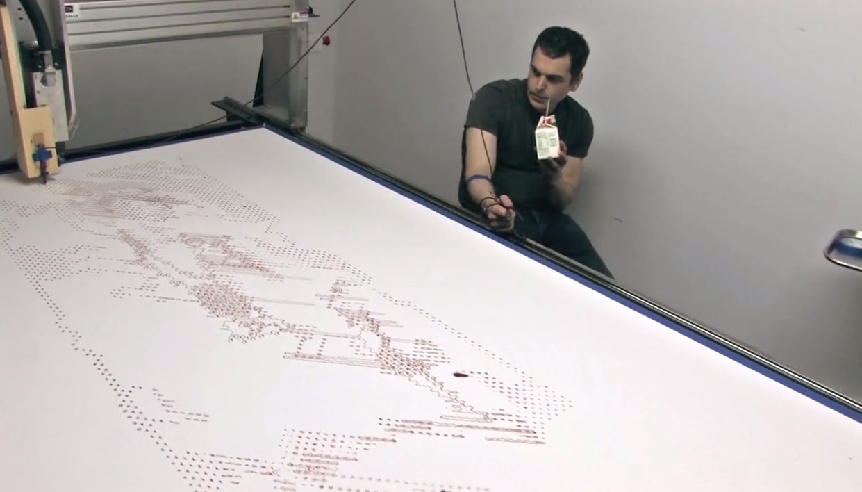 Have you ever wanted to see a nude self-portrait done in the artists’ own blood with the help of a robot? Because Brooklyn-based artist Ted Lawson’s piece “Ghost in the Machine (blood robot selfie)” is exactly that. You can see the process Lawson went through to create the work in the video above. (Probably best skip this one if you’re squeamish.)