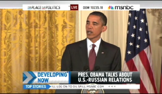 Obama: “[I have valued] very much the opportunity to hear president Medvedev’s vision for modernization in Russia, especially high tech innovation. It is a personal passion of the president. During his visit to Silicon Valley this week, he visited the headquarters of Twitters, where he opened his own account. I have one as well, so we may be able to finally throw away those red phones that have been sitting around for so long.”
