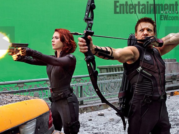 First up, here are Scarlett Johansson and Marvel newcomer Jeremy Renner as Black Widow and Hawkeye, respectively.