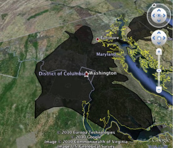 Two people have given us tools to help visualize these vast amounts. Google engineer Paul Rademacher, who started the Google Earth browser plug-in and currently works as a Google Maps engineering manager, has harnessed the power of Google Maps to illustrate how much oil was lost in terms of familiar cities: In the graphic above, you can see the DC metropolitan area, and other overlays include New York, San Francisco, and London. You can check out his map tool here.