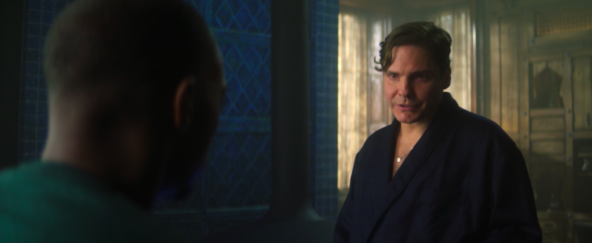 As Bucky is talking to Ayo and the boys are trying to figure out what their next move is, Baron Zemo is taking a relaxing bath in, honestly, a very cozy-looking bathtub and living his best relaxation life in a bathrobe.
