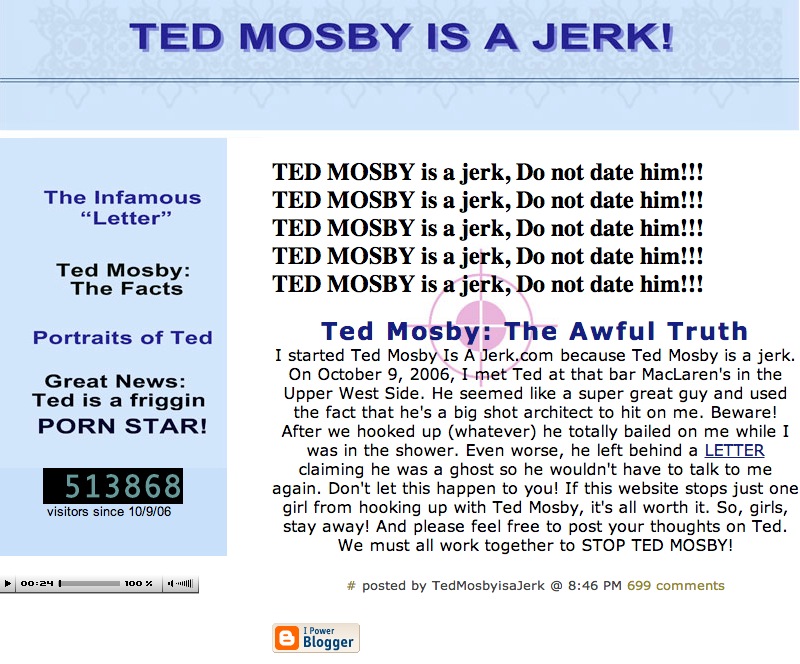 The most recent item on our list, this is an in-universe site made by a woman Barney treated poorly on How I Met Your Mother, but he told her he was Ted. She created a website about what a jerk he is on the show, which was set up on the real Internet. More than six years later (8 going by the show’s timeline), it still exists to remind the world that Ted Mosby is a jerk. It maybe comically bad on purpose, but you probably forgot it existed when you tried to Eternal Sunshine all knowledge of HIMYM out of your brain after the finale. So, go check it out and remember the good times.