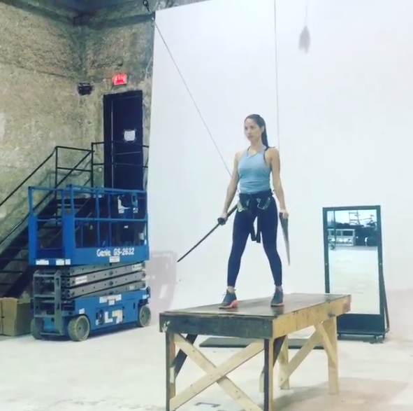 Olivia Munn Practices Psylocke’s Sword-Swinging Moves, On Wires