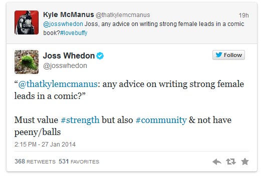 Two years ago, I wrote an open letter to Joss Whedon, someone of whose work I’m a huge fan. He responded to a fan question via Twitter like this: