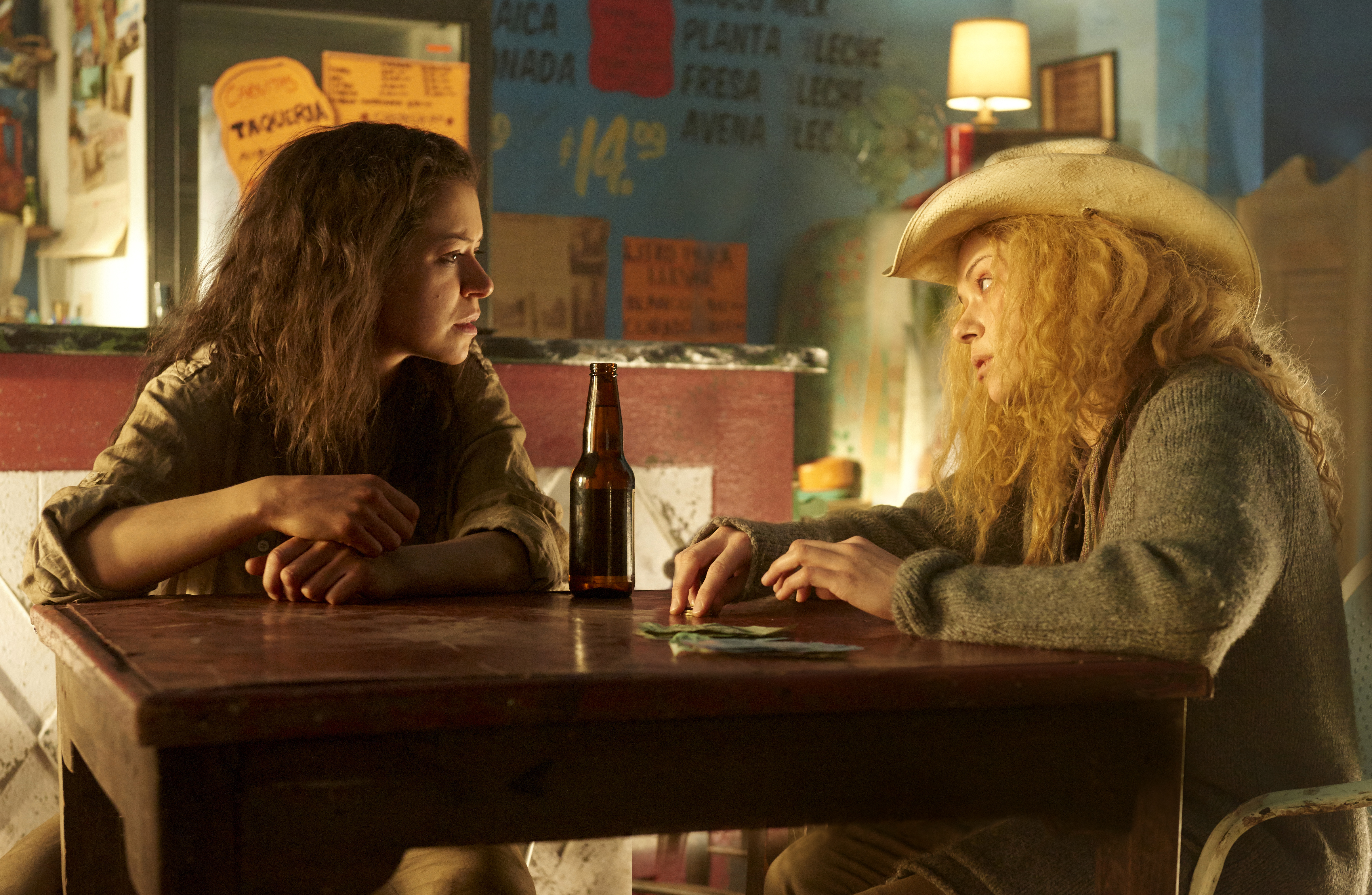 Before we get into whose story this really was (P.S. – It was Alison’s), Sarah and Helena are dealing with the aftermath of their imprisonment in Mexico (ah, so that’s what Fake Middle East was) in a cantina. As they plan their next steps (or in Sarah’s case, as they deflect questions about painful topics like Paul dying), Mrs. S. shows up, right on cue after Helena tells Sarah that she’s going to kill Mrs. S. for selling her out.