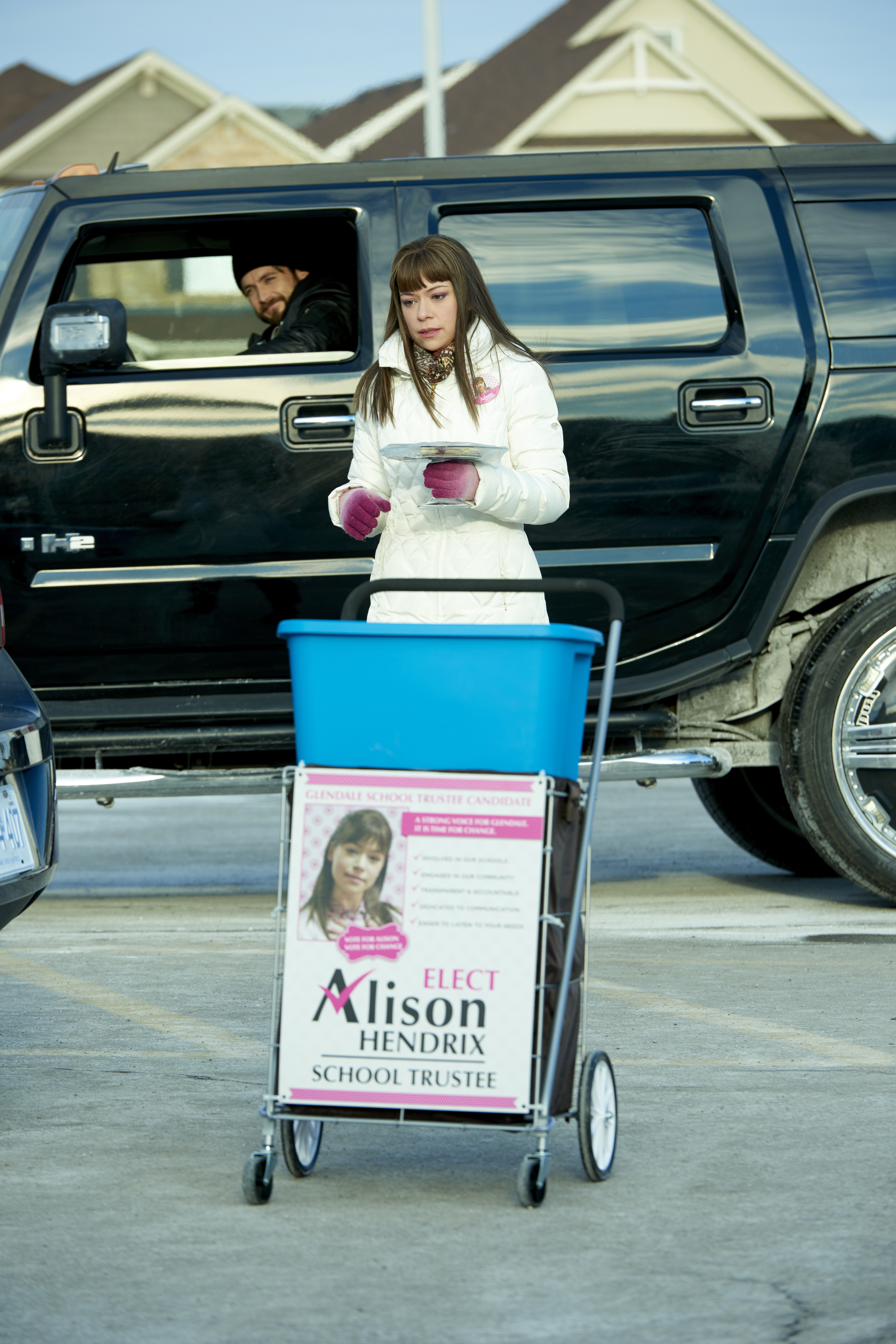 And now, for the bulk of the episode. Alison. Oh, Alison. She starts out preparing for a Meet the Candidate event in the run for School Trustee. “All she has to do” is get her mother to sign Bubbles over to her, then head over to the event to give a speech and hand in her nomination signatures as Donnie goes with Jason to their drug supplier, Ponchy, with the money he’s owed. Simple, right? Except that Donny accidentally takes the envelope with the signatures in it, and Alison takes the one with the money. Oh, and her mother decides to not sign Bubbles over to them, because Alison would have “Chubbs” in charge (don’t get offended! If you’ve been reading the awesome Orphan Black comic, you’ll know that it was already revealed in the Alison issue that Donnie’s last name is Chubbs, and that he took Alison’s last name when they got married!).