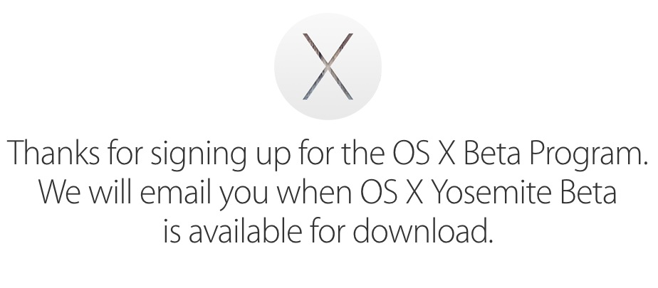 All you need to get involved is a Mac that’s capable of running OS X Yosemite and an Apple ID. If you’ve got both of those things, just head over to Apple’s OS X Beta Program page for quick and easy signup. Again, the program is limited to the first 1 million users to sign up, so you should do it immediately if you’re interested, and then you’ll hopefully be greeted with a screen like this: