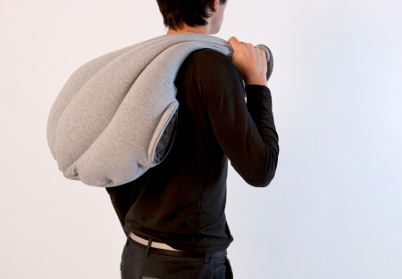 OSTRICH offers a micro environment in which to take a warm and comfortable power nap at ease. It is neither a pillow nor a cushion, nor a bed, nor a garment, but a bit of each at the same time. Its soothing cave-like interior shelters and isolates our head and hands (mind, senses and body) for a few minutes, without needing to leave our desk.