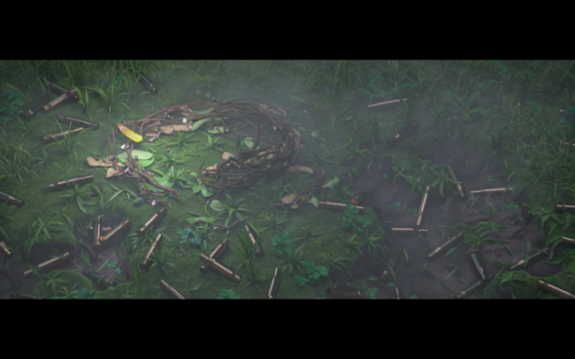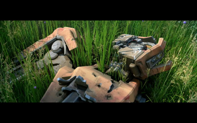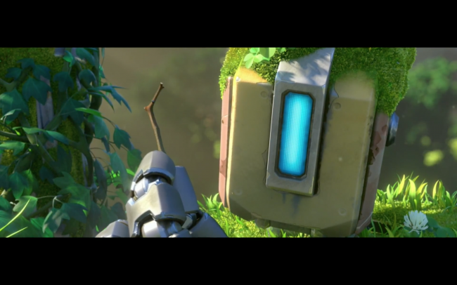 The short begins with Bastion’s little bird buddy, Ganymede, waking him up after a seemingly long hibernation–he is, after all, covered in forest overgrowth. From there, the clip gets especially Disney-like as he explores the forest with the bird on his way to complete his mission from way back during the game’s major war, the Omnic War. There are more than a few interesting moments in the trailer, including one involving a woodpecker and some very PTSD-like symptoms. As well, because Overwatch seems to just be littered with cross-references, Reinhardt briefly shows up in the background during Bastion’s flashback.