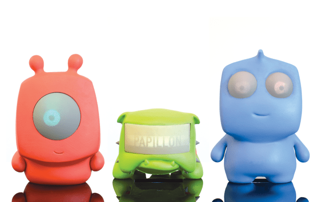 Called PAPILLON, which means that it’s either been named for the French word meaning “butterfly” or for the breed of fancy spaniel lapdogs, the eyes debuted at ACM SIGGRAPH 2013 this past week in Anaheim, California. These figures in this particular series are each about the size of a softball and have been given the names Beep, Boop, and Iggy, which instantly makes me like them that much more. Yes, your animated Cyclops-style visor-eyes are really off-putting at first glance, but you’re a little green pit bull named Iggy! I can’t stay mad at you!