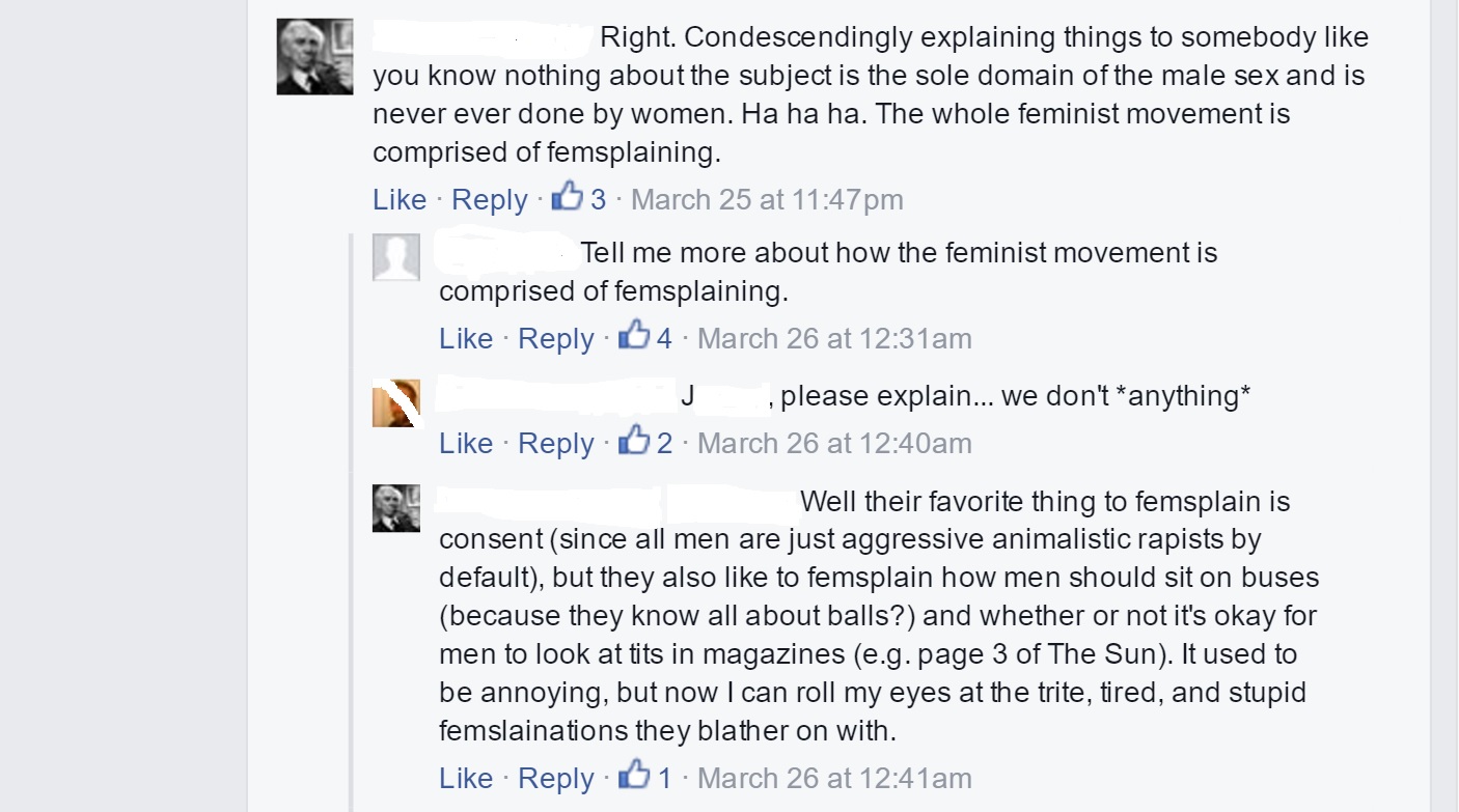 But you know what? They’re absolutely right, these two. Hell, there was a woman on the page who totally “femsplained” (I guess?) the sketch: