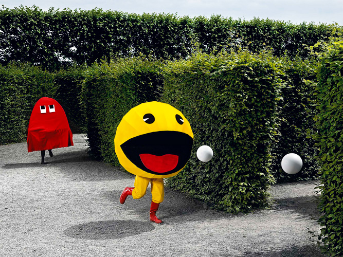 Photographer Patrick Runte has put together a radical, mint photo shoot that brings old school ’80s video games to life. Perfect for those of us who have played Pac-Man and secretly (or not-so-secretly) wished we could re-enact it every time we were in a garden maze. More after the jump.