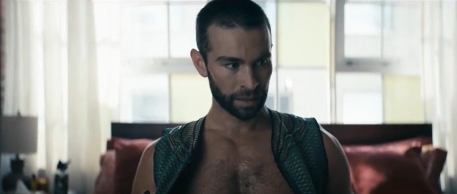 Funnily enough, that same hero, The Deep (human name Kevin) as played by Chace Crawford, was also involved in Oswalt’s scene. Because it involved the Deep taking some trippy drugs from the Supe version of Scientology in order to better know himself and confront his reprehensible past actions. Kevin had a big fall in season one: after sexually assaulting Starlight, he was banished from the Seven and we learned that a lot of his deep-seated issues come from sensitivity about his gills. The organs that allow him to breathe underwater are also not something Kevin likes people to see.