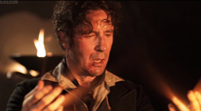 The regeneration is the whole story here. Putting it in the headline was a judgement call based on the fact that the exact moment I recognized Paul McGann I knew exactly what they were doing. A McGann/Eccleston regeneration has been something Doctor Who fans (of which I am one) have been wanting since the show came back. I genuinely believe anyone else who would recognize Paul McGann would make the exact same jump at the exact same moment I did — twenty seconds into the video.