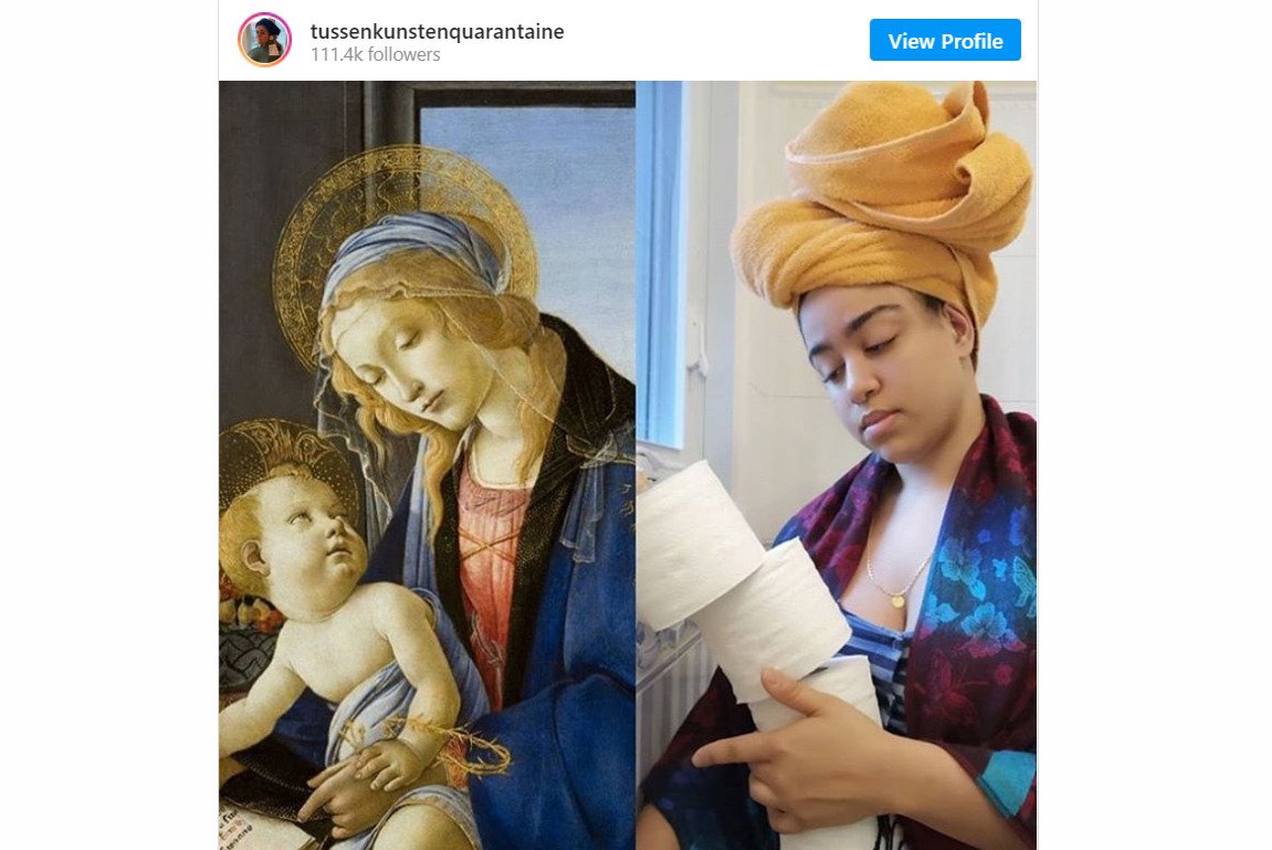 But it’s a trend that’s been going for a while on Instagram under the tag #TussenKunstEnQuarantine and gathered the account tussenkunstenquarantine, which translates to “between art and quarantine.” The results from both challenges are indeed works of art.