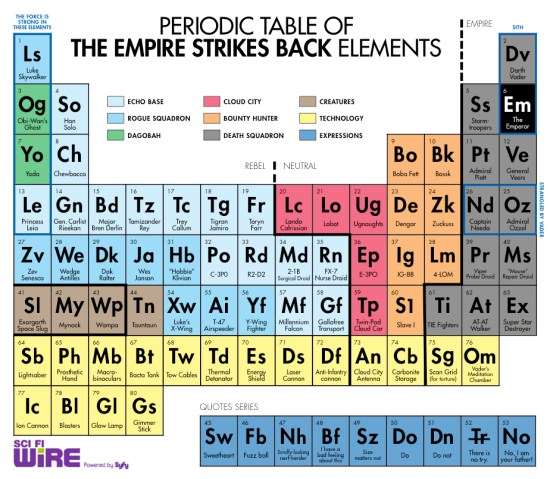 Anyway, Scifi Wire has drummed up this tribute to the classic: The Periodic Table of Empire Strikes Back Elements. Click to embiggen.