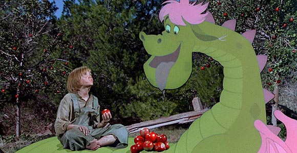 Pete’s Dragon was something fun and different to watch when I was a child. Similar to films like Bedknobs and Broomsticks and Mary Poppins, it mixed live-action acting with animation. It took place in a small fishing town in Maine called Passamaquoddy in the early 20th century and starred Helen Reddy, Mickey Rooney, and Sean Marshall as an orphan named Pete. It also stared a giant, usually invisible dragon called Elliot. Hijinks ensue when a crackpot doctor and some miscreants from town (who bought Pete) decide they want to steal Pete’s best friend. Oh yes, there was also much singing and dancing.