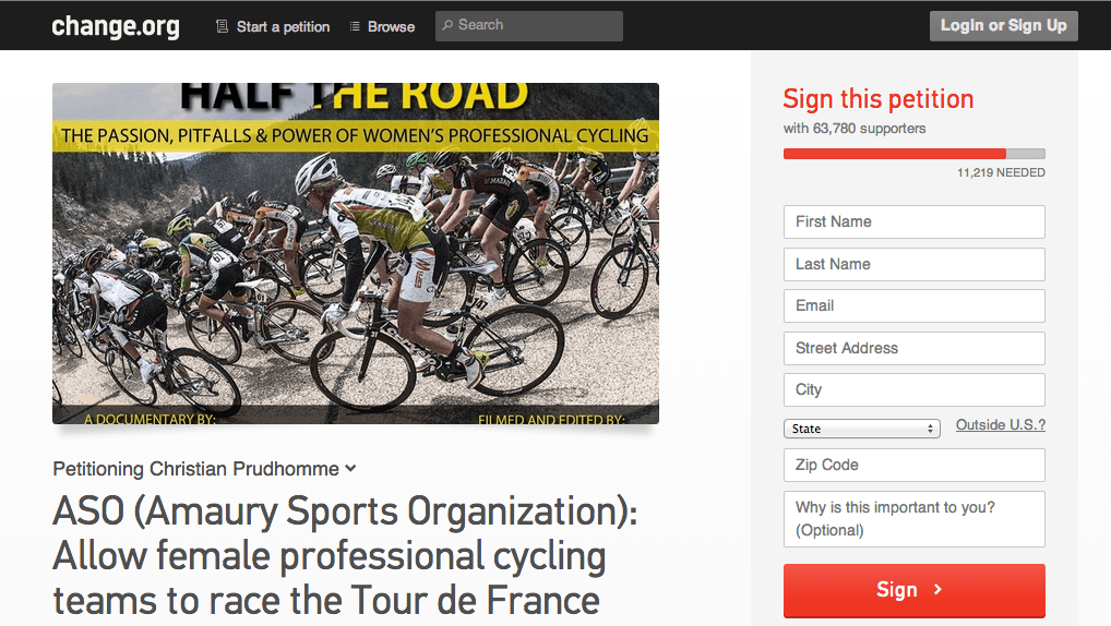 The goal of the petition, beyond simply introducing women’s cycling to one of the most notable cycling competitions in the world, is to bring attention to the inequalities in the cycling world to best effect, through a prominent event, and to hopefully open up for female cyclists the same opportunities that male cyclists already possess. In addition to allowing this accessibility to the longer races and larger prizes that male cyclists receive, Pooley and her colleagues also want to show that, physically, female cyclists are capable to competing with male cyclicts.