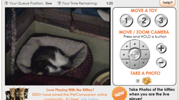 It’s called the iPet Companion and it allows you to control kitty toys remotely so you can keep otherwise bored cats entertained. Via the FAQ: “A signal is relayed from the servers at iPet Companion to the control boxes situated within the home (located anywhere in the world) – that allows for users to see and move the toys, with minimal time lag” says Scott Harris, founder and owner Reach-In, the Idaho-based company that developed the software. It seems to be getting use from shelters across the country but is also available for home use. It will set you back $349.95 plus postage for the cat version, $395 plus postage for dogs, and a $4.95 monthly service fee for your own interactive webpage. You must supply the actual toys. And no, you don’t get your money back if your cat thinks it’s stupid, no matter how great you think it is.