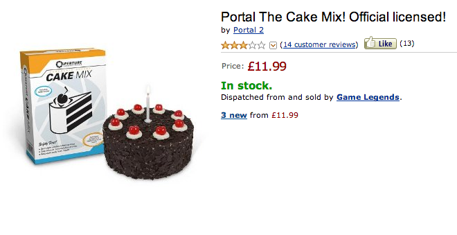 Well, maybe. With cake related Portal themed products, you always run the risk of somebody thinking it’d be funny to make it a lie (also this is clearly not officially licensed, or Valve would be selling it in their store). And it’s hard to tell from the user reviews here, because, frankly, between “the cake is a lie” jokes and Amazon customer reviews on joke products we may have found the greatest source of natural irony the world has ever known. So how about we just look at the product page, and then go home and make our own black forest cake.