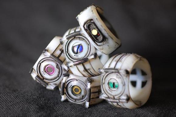 On the list of “things I need that I never knew I needed,” Portal rings are now sitting at the top. Designer Chris Myles has created a series of nifty rings in the image of GLaDOS and her personality cores. Cake, and grief counseling, will be available at the conclusion of this post.