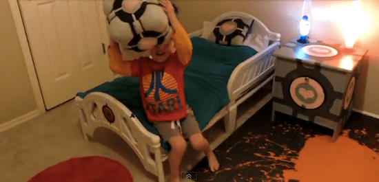 Taking it a tad further than a race car bed, James Farr gave his son a bedroom reminiscent of a terrifying testing facility in which most people get murdered by a homicidal robot. Yes, his son is the proud occupant of a Portal themed bedroom. Complete with Weighted Companion Cube pillows and a nightstand, Heavy Duty Super-Colliding Super Button rugs, wall scrawlings that pose theories regarding the legitimacy of cake, one of GLaDOS’ cameras, and even an Aperture Laboratories branded toilet. Assuming GLaDOS isn’t actually watching this kid, he’s probably pretty happy in his room that is cooler than our rooms.