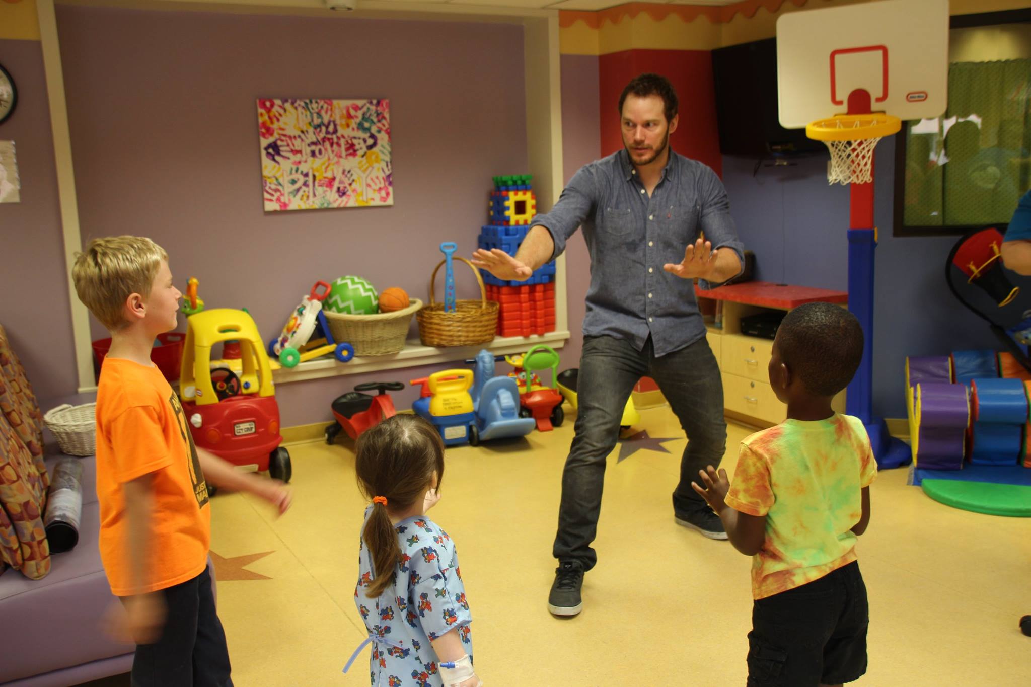 Not to Be Outdone by Zookeepers, Chris Pratt Recreates Raptor Training With Kids in a Hospital