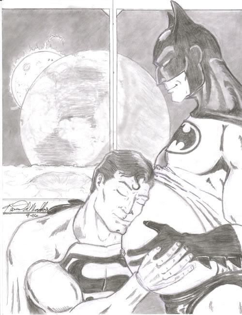 A tipster — who we’re guessing may have seen this on Reddit? — sends along this interesting fan picture accompanied only by the subject heading “for you” and the word “Ummmmmmmmmmmmmmmmmmmmmmmmmm-mmmmmmmmmmmmmmmmmmmmmmmmmm” — Batman is pregnant. And on the moon. And Superman is listening to his unborn child kick while Batman smiles knowingly.