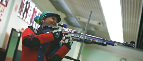 Nur Suryani Mohamed Taibi is no stranger to being under pressure. As a first-time Olympian, the first woman to represent Malaysia in shooting, and 47th in the world in the 10-meter air rifle event, the 29-year-old Malaysian woman is used to shooting under a considerable amount of strain. After all, though the sport certainly looks easy, marksmanship depends on a delicate balance of breathing, timing, centering oneself, and shutting out the rest of the world in order to get that perfect shot. Even the smallest distraction can put a bullet off by scant millimeters, enough to change the entire competition. However, the prospect of competing in front of the entire world isn’t what’s most unnerving about the London Olympics — it’s that, at 8-months pregnant, she’ll have to step up to her rifle and will her baby not to kick while she’s making her decisive shot.
